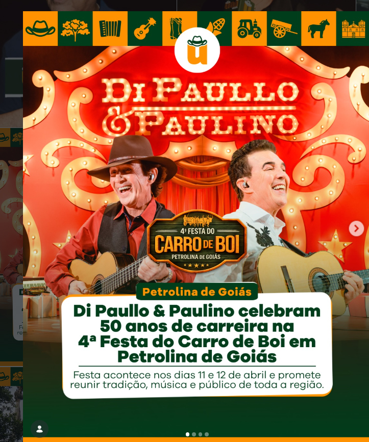 Entre os destaques está a dupla @dipaulloepaulino , referência da música sertaneja com mais de 50 anos de carreira. O evento deve reunir público de toda a região em dois dias de festa e tradição.