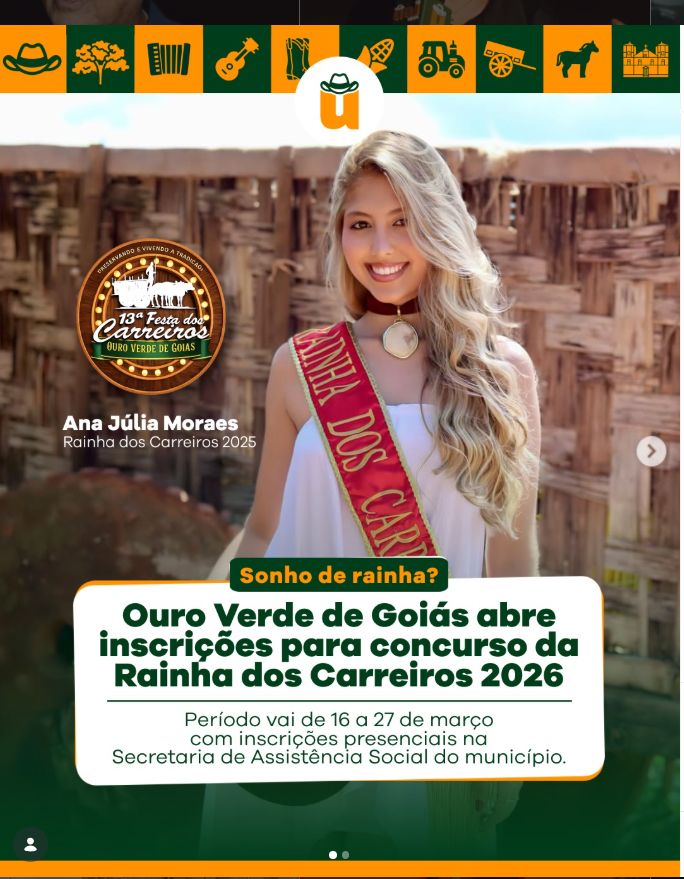 Estão abertas as inscrições para a escolha da Rainha e Princesa da 13ª Festa dos Carreiros de Ouro Verde de Goiás, um dos eventos mais tradicionais da região.